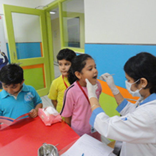 Our health unit is staffed by a full -time doctor & nurses who monitor the general physical development of our children and provide immediate first-aid treatment if needed. Arrangements exist for oxygen cylinder and nebulizer. Check ups for dental, eyesight, weight and height management are conducted on regular basis. This benefit's in identifying any problem at the very initial stage.